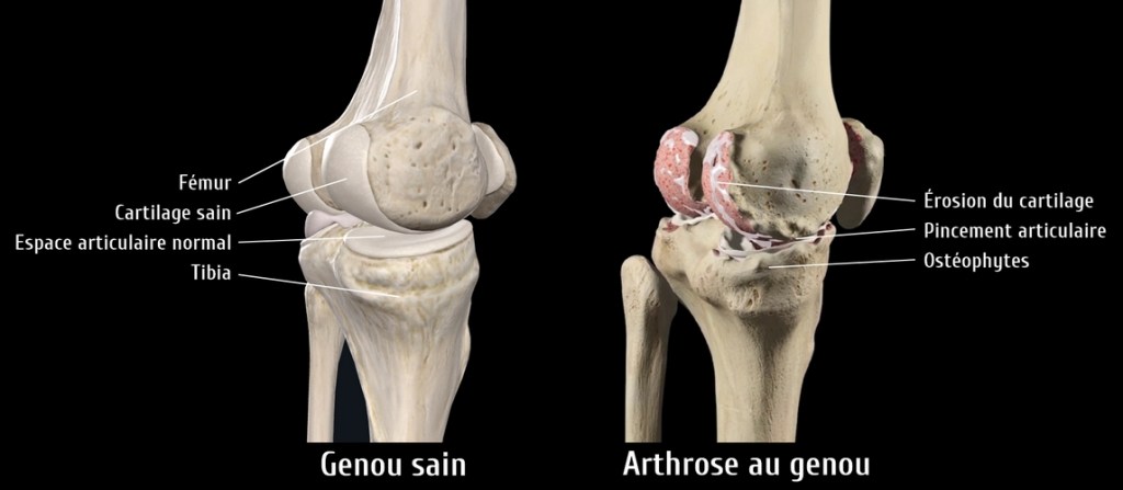 L’arthrose est une forme d’arthrite, terme qui regroupe de nombreuses conditions qui affectent et génèrent de l’inflammation aux articulations du corps. Anatomiquement, dans une articulation saine, un tissu souple et résistant nommé cartilage recouvre les os pour les protéger et favoriser le mouvement. Les cellules qui composent le cartilage produisent des substances pour le maintenir en état et lui permettre de résister aux stress qu’il subit. (1)